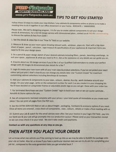 Our qualified Cabinetmaking Team can give you tips on how to assemble & install your new cabinets